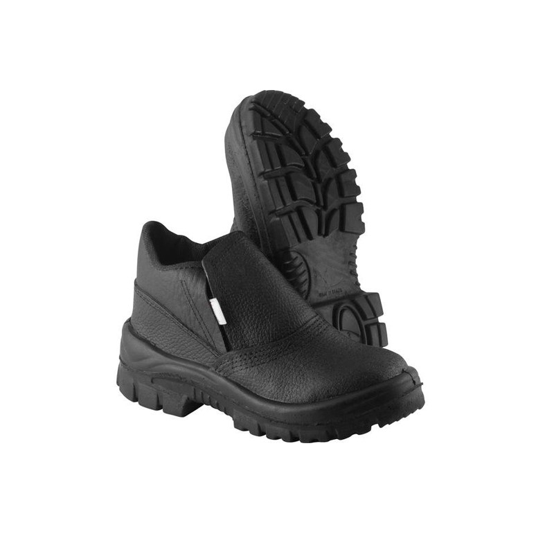 Calçado ocupacional tipo botina, fechamento em elástico nas laterais (preto, branco ou marrom) ou em cadarço (preto), confeccionado em couro curtido ao cromo, palmilha de montagem em material sintético, solado de poliuretano bidensidade injetado diretamente no cabedal, sem biqueira de aço, para uso eletricista.