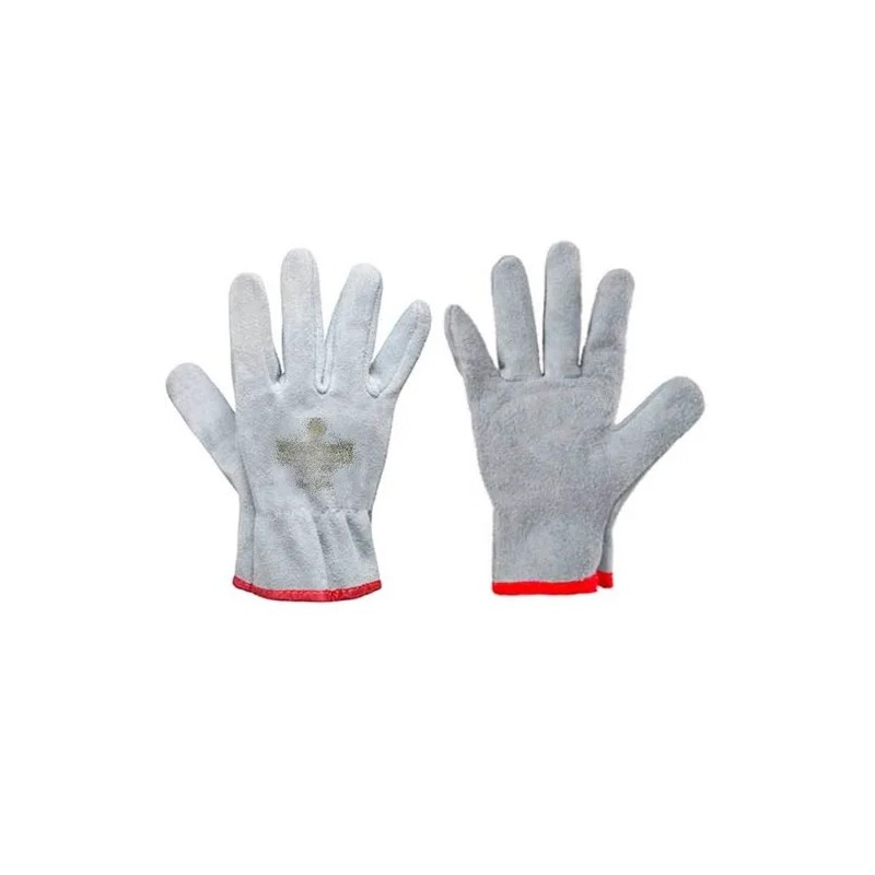 Luva de segurança confeccionada em raspa; reforço interno na face palmar e nos dedos; tira de reforço entre os dedos polegar e indicador; punhos 7cm