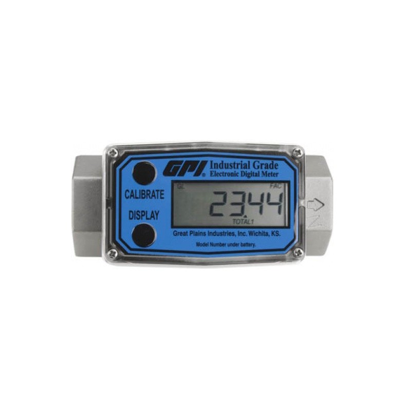 Em aço inox, com 02 totalizadores (parcial e acumulativo), indicador de vazão configurável em uma das opções: min, h, L e Gal.