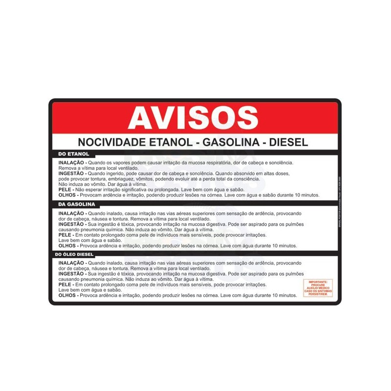 Placa Adesiva Nocividade Etanol, Gasolina e Diesel